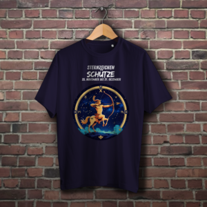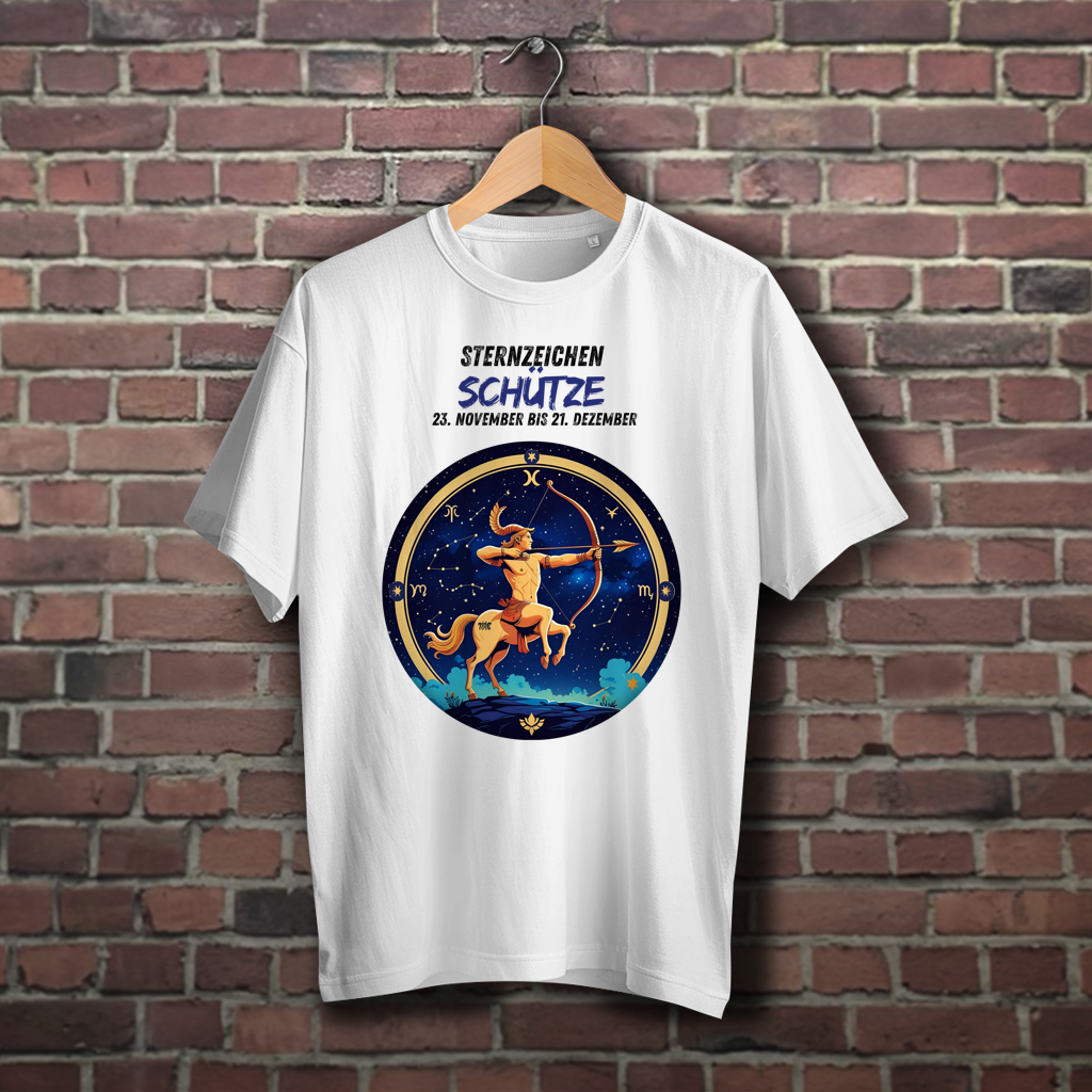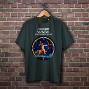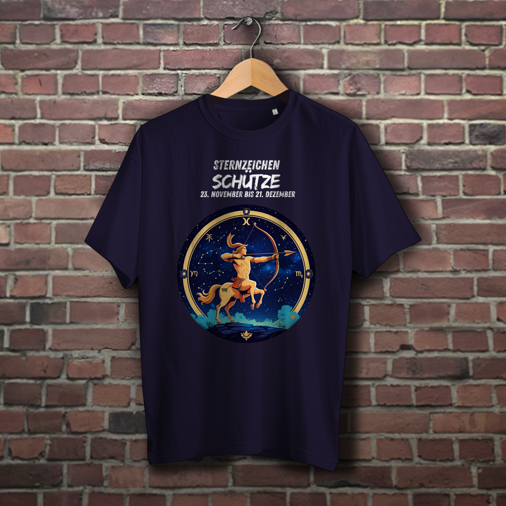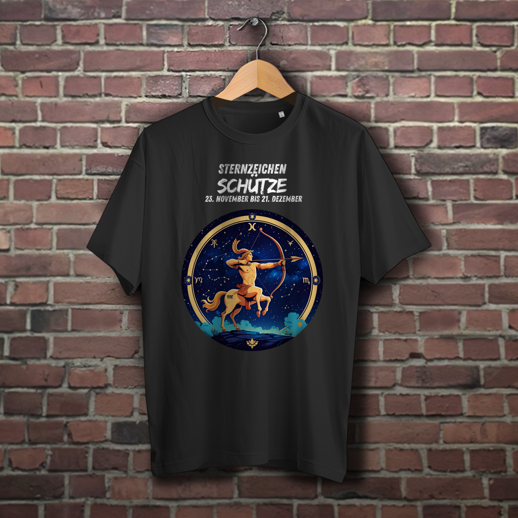 Hochwertiges T-Shirt mit markantem Schütze-Sternzeichen-Motiv – ideal für Abenteurer und Astrologie-Fans.