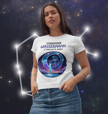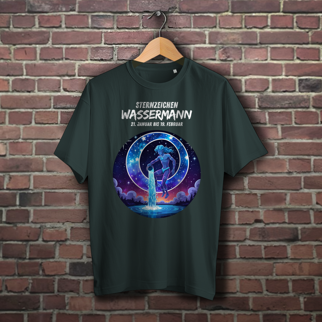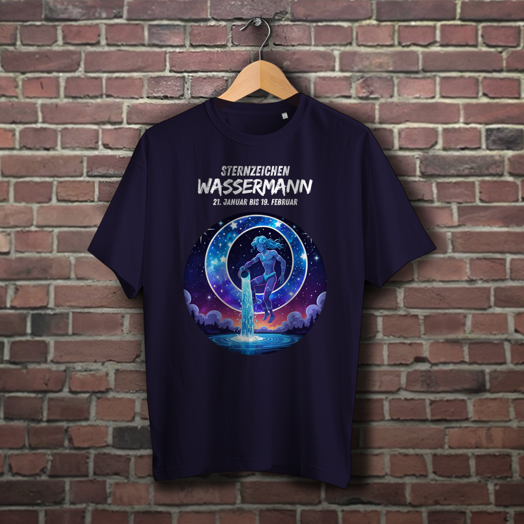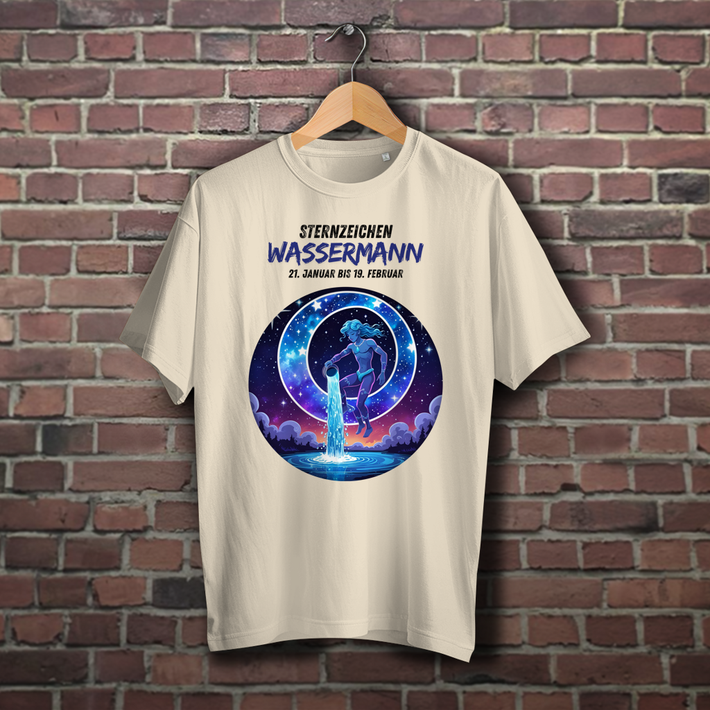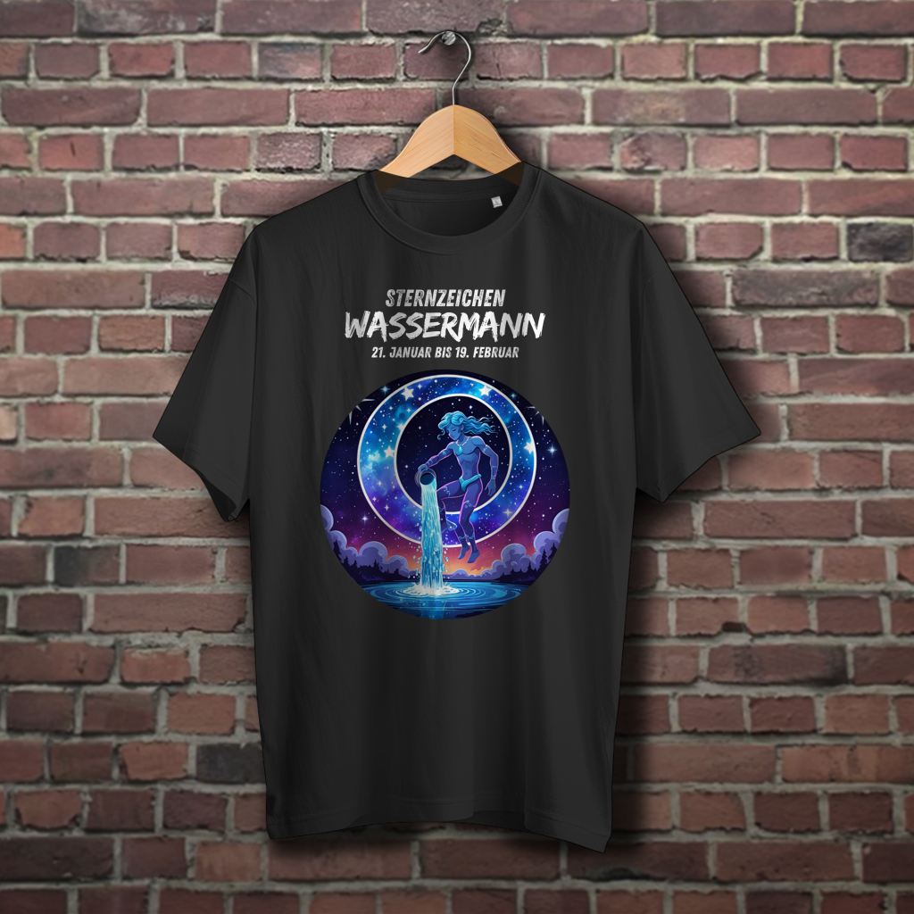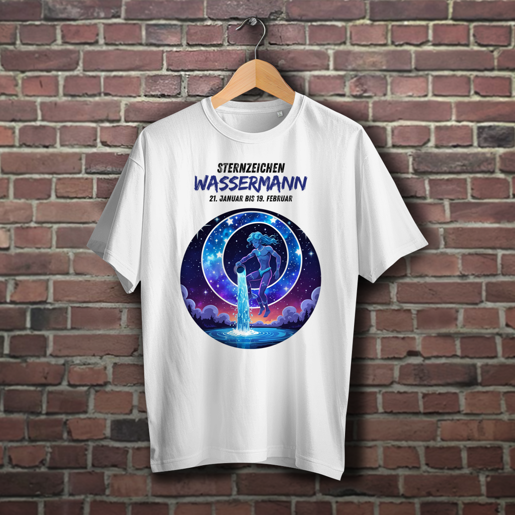 Trendiges T-Shirt mit kreativem Wassermann-Motiv – ideal für Wassermann-Geborene und Astrologie-Fans.