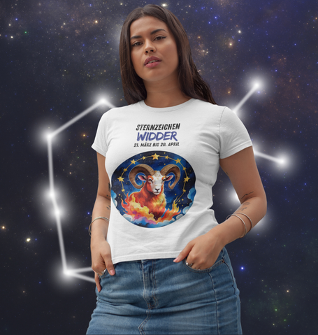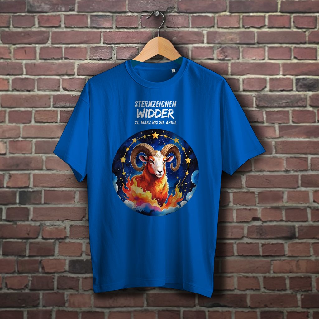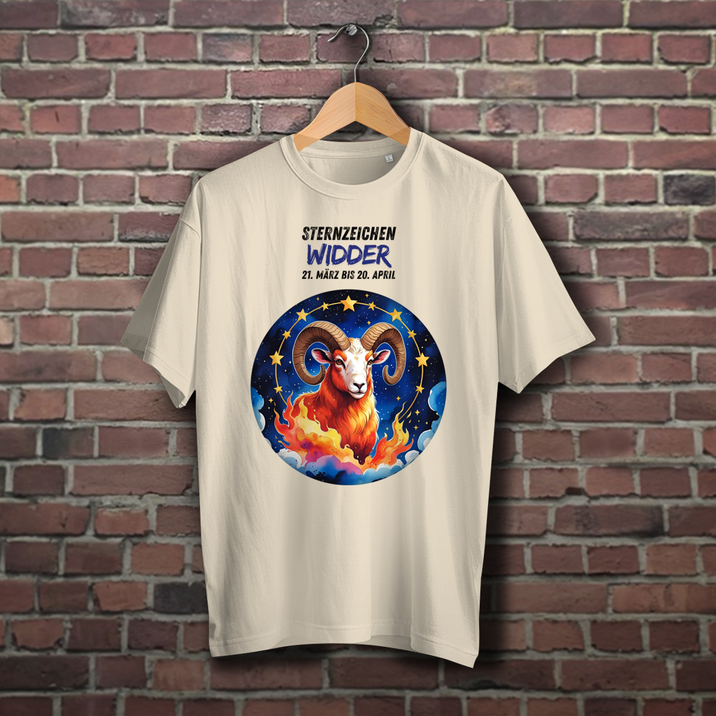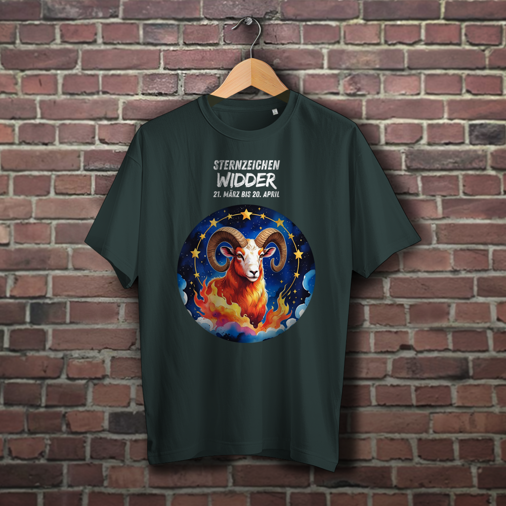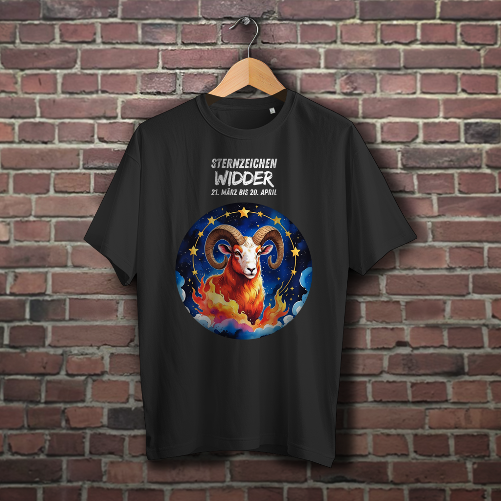 Modernes T-Shirt mit kraftvollem Widder-Motiv – ideal für Widder-Geborene und Astrologie-Fans.
