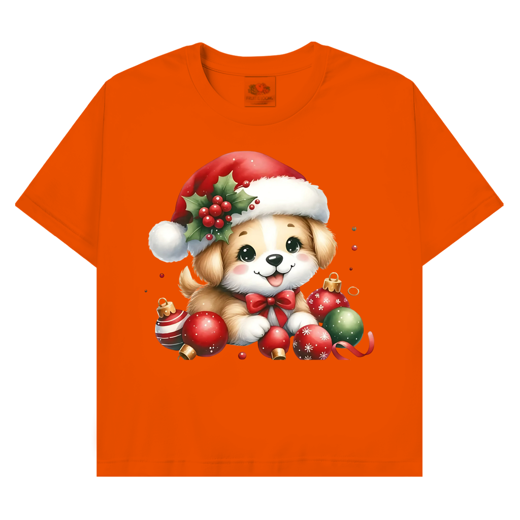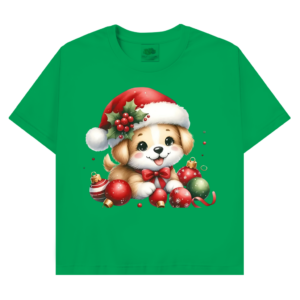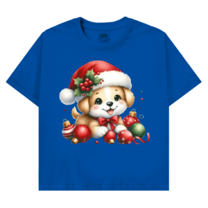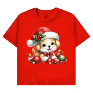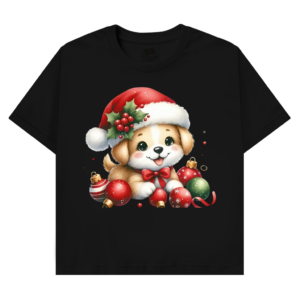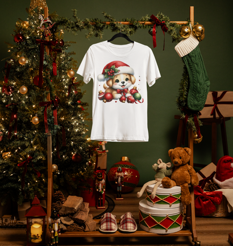 Weihnachtliches T-Shirt mit süßem Hundemotiv, ideal für festliche Anlässe und als kreatives Geschenk.