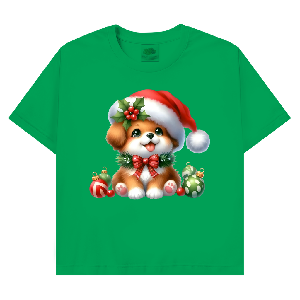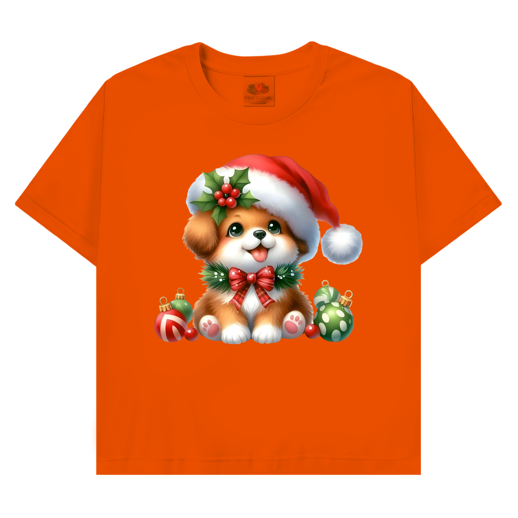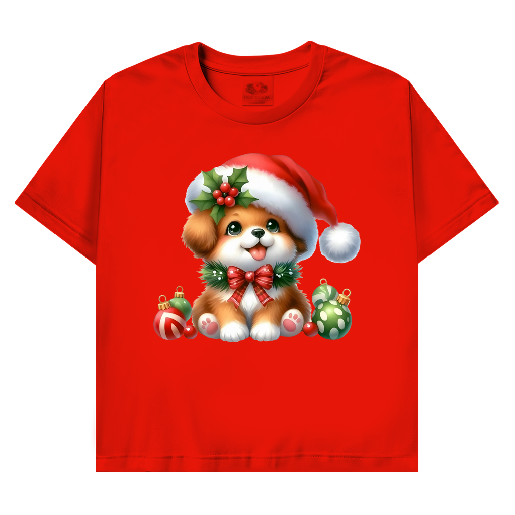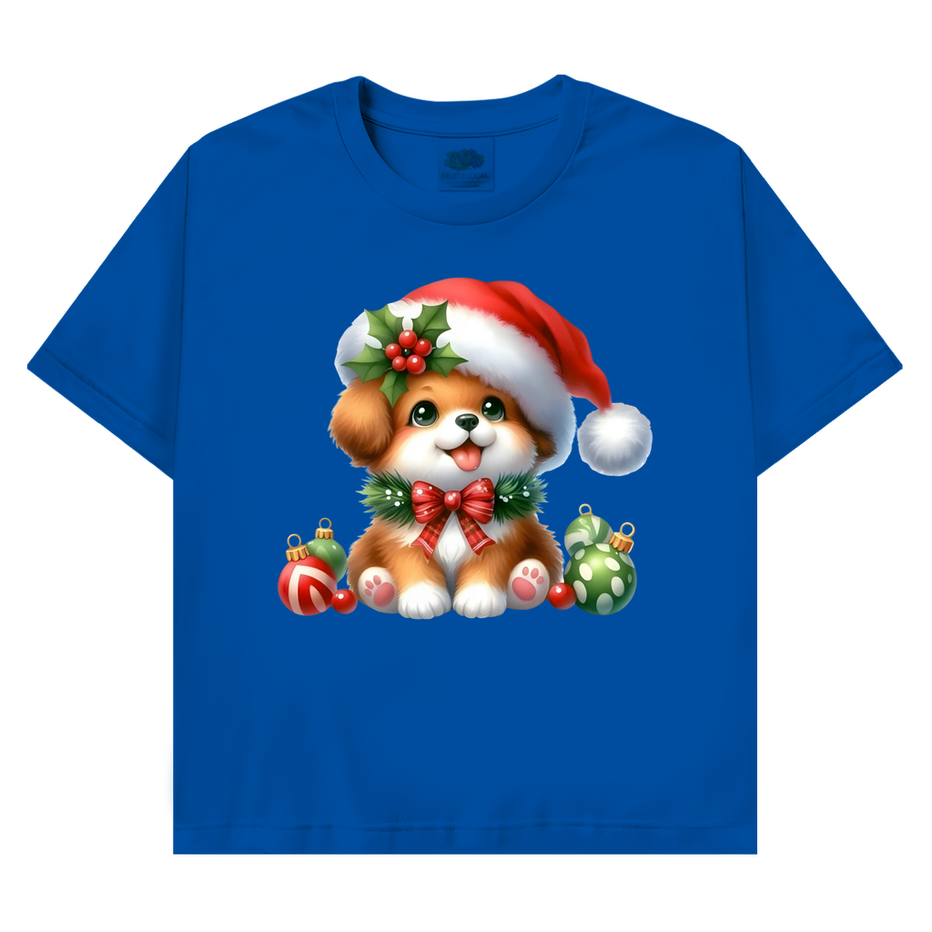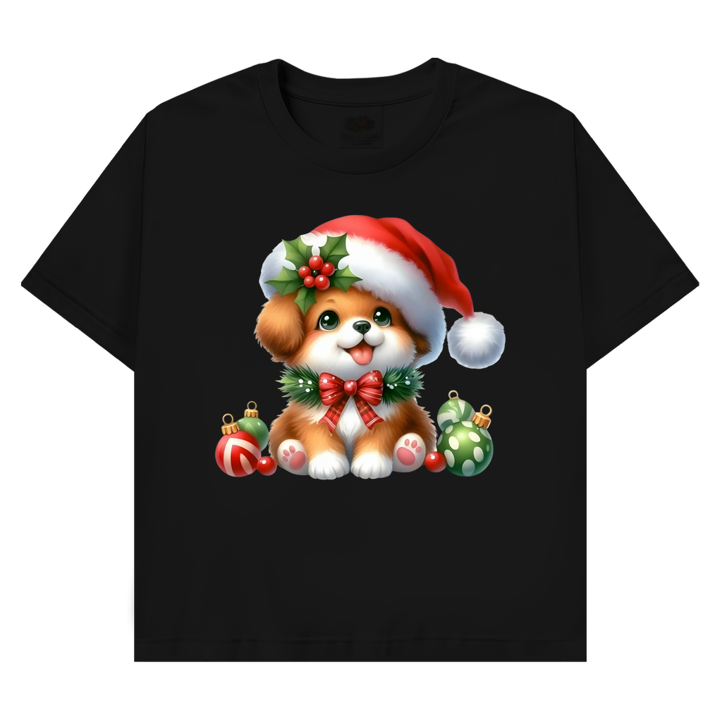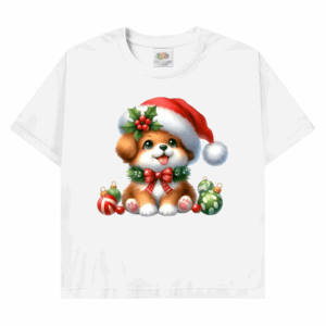 Ein bezauberndes T-Shirt mit einem kleinen, weihnachtlichen Hund mit Bommel – perfekt für die Weihnachtszeit. Weich, hochwertig und festlich zugleich.